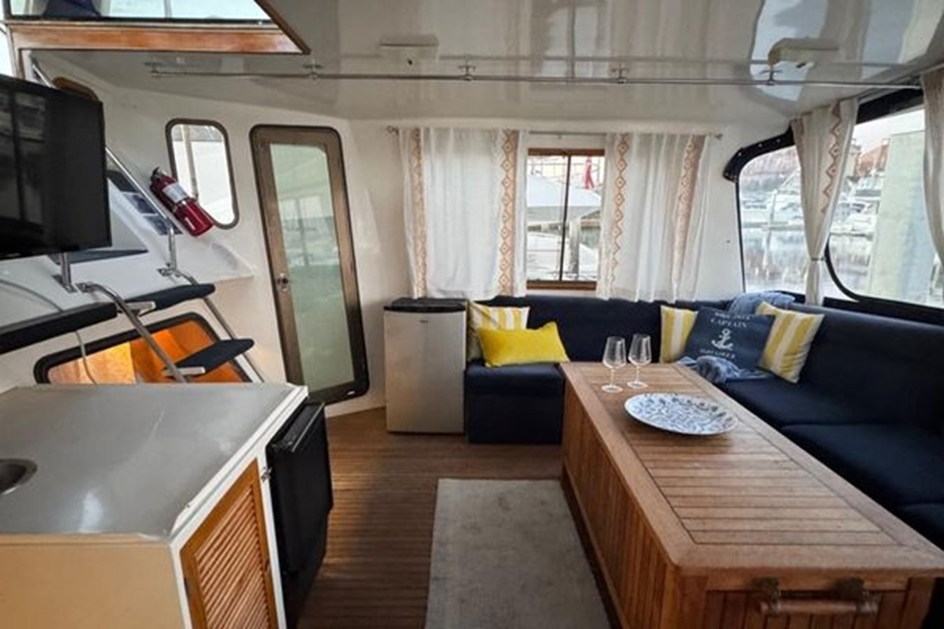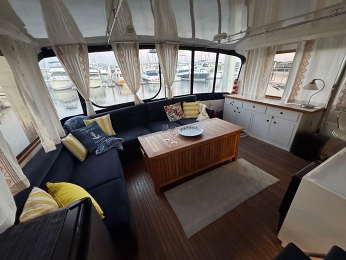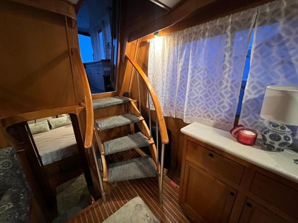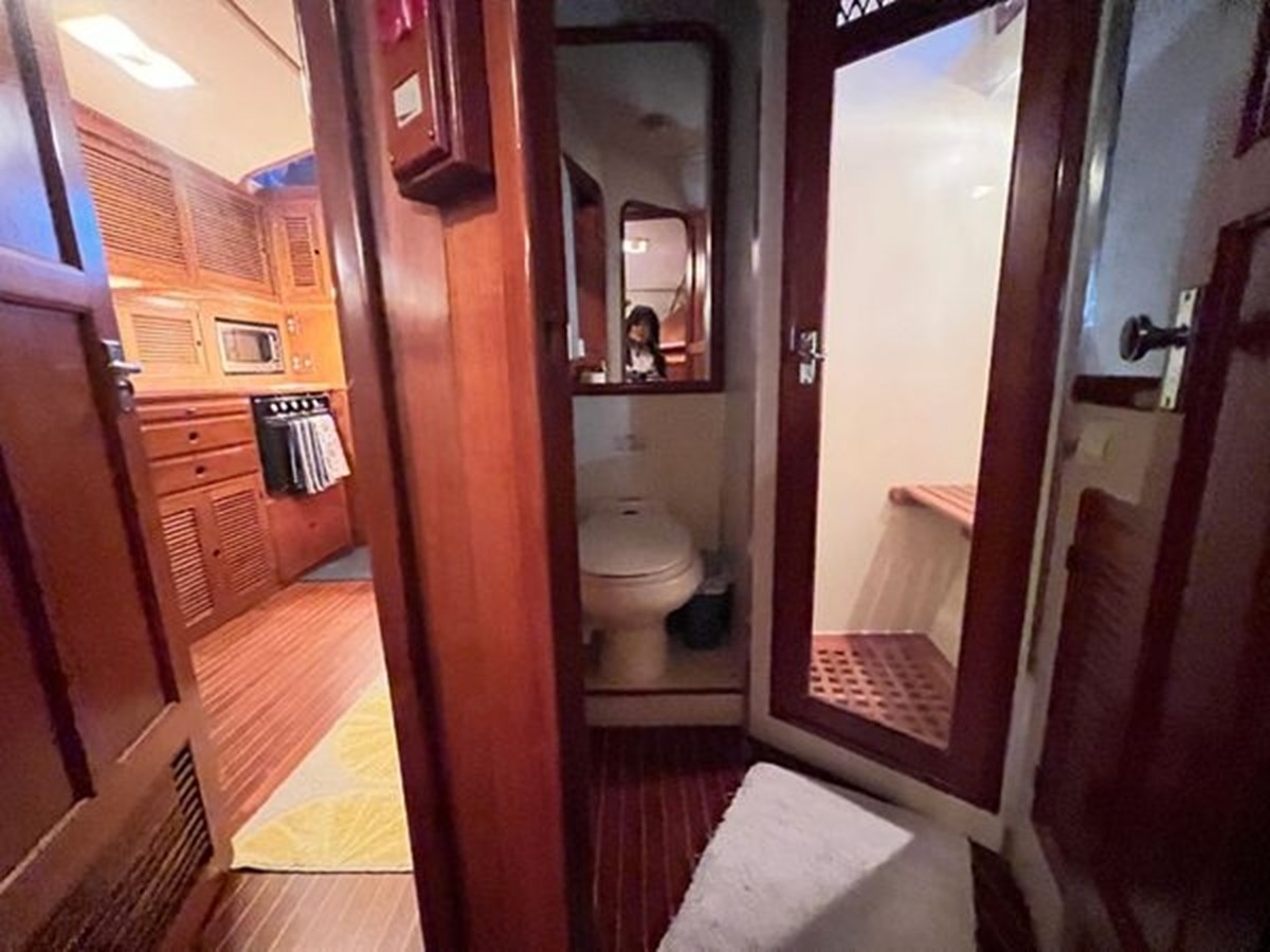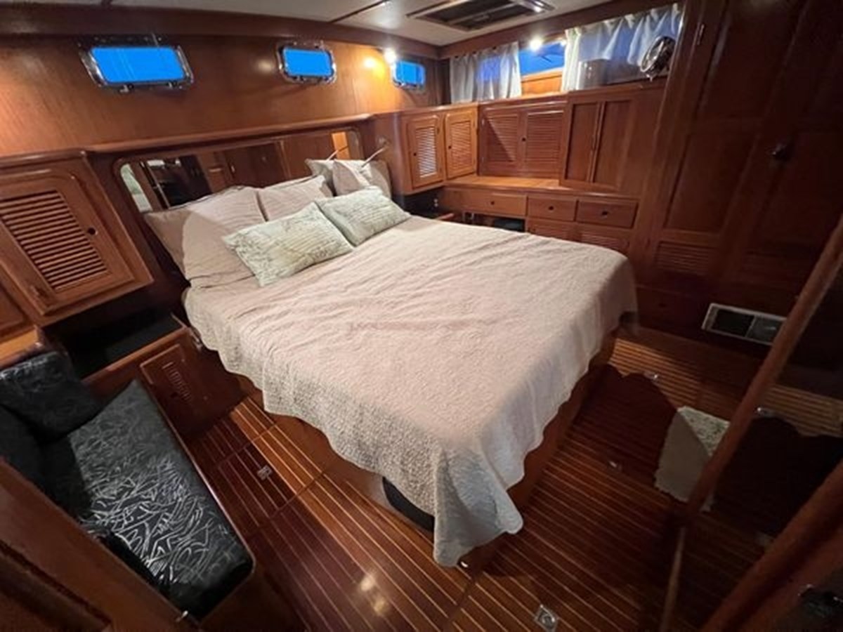 Her encompassing layout features a substantial salon and stateroom spaces, ideally suited for social gatherings, liveaboard leisure, or prolonged retreats. Classic aesthetics, superior craftsmanship, and considerate enhancements assure that this yacht makes a distinct impression in the contemporary market.