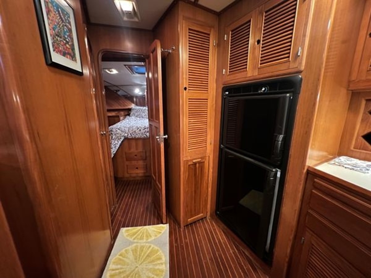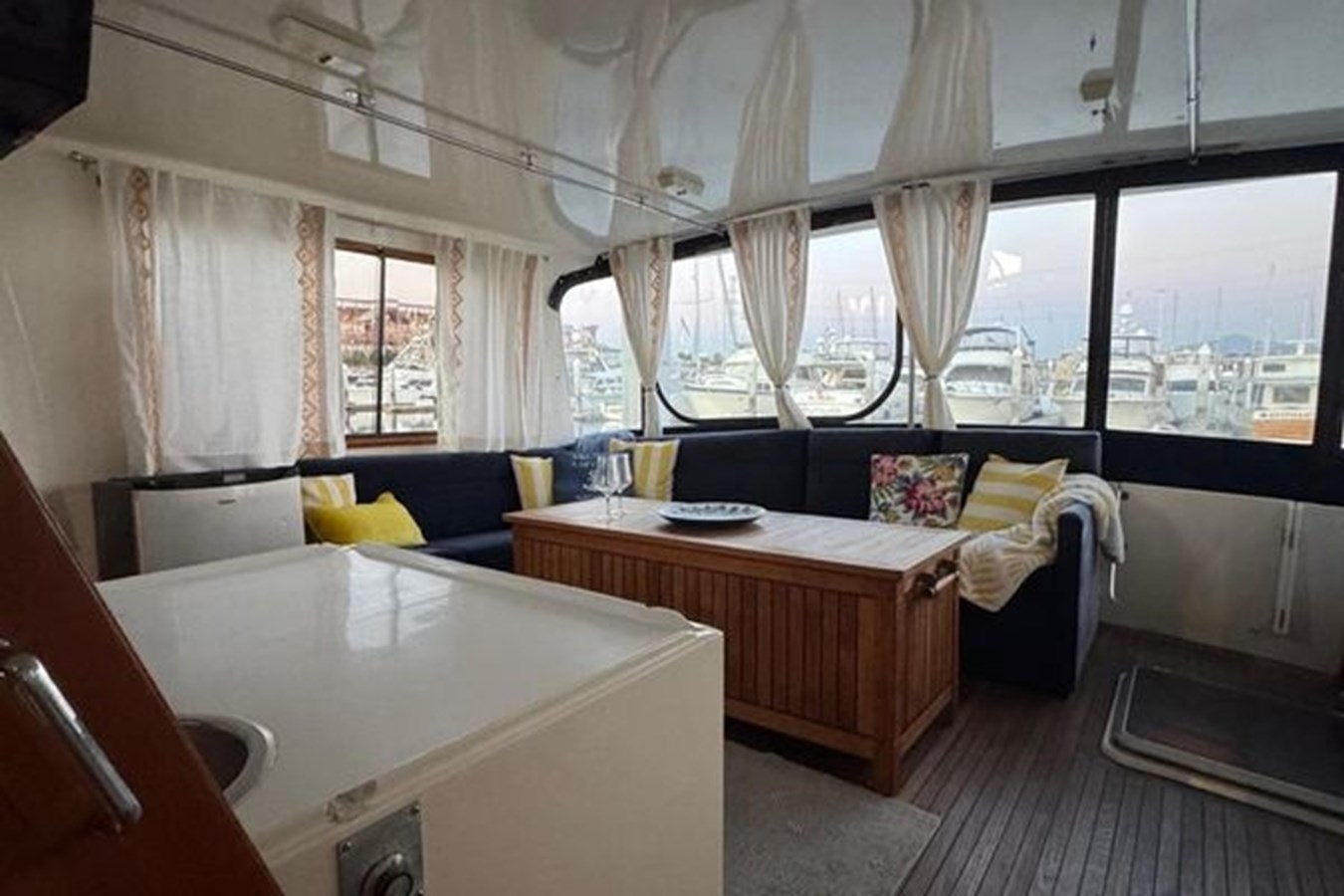 Her encompassing layout features a substantial salon and stateroom spaces, ideally suited for social gatherings, liveaboard leisure, or prolonged retreats. Classic aesthetics, superior craftsmanship, and considerate enhancements assure that this yacht makes a distinct impression in the contemporary market.